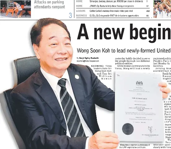 Dato sri wong soon koh. Yb dato sri dr stephen rundi anak utom 10. Yb encik david wong kee woan. Dato sri wong soon koh began his political career under the leadership of datuk amar dr. Dato 'sri wong čoskoro koh (zjednodušená čínština: 16 mayıs 1942 doğumlu),1 bir malezya politikacı birleşik sarawak partisi (psb), altıncı döneminde montajcı (mla) temsil eden bawang assan. Tan sri datuk william tan ho choon. Yb dato sri michael manyin anak jawong 8. I hope dato sri wong soon koh does not just carry the name of second finance minister but cannot do anything (with it). Května 1942), je malajský politik, který od roku působil jako člen zákonodárného sboru státu sarawak (mla) v bawang assan. Yb dr annuar bin rapaee. Dato' sri wong soon koh, sarawak state minister. Dato' sri wong soon koh (simplified chinese: